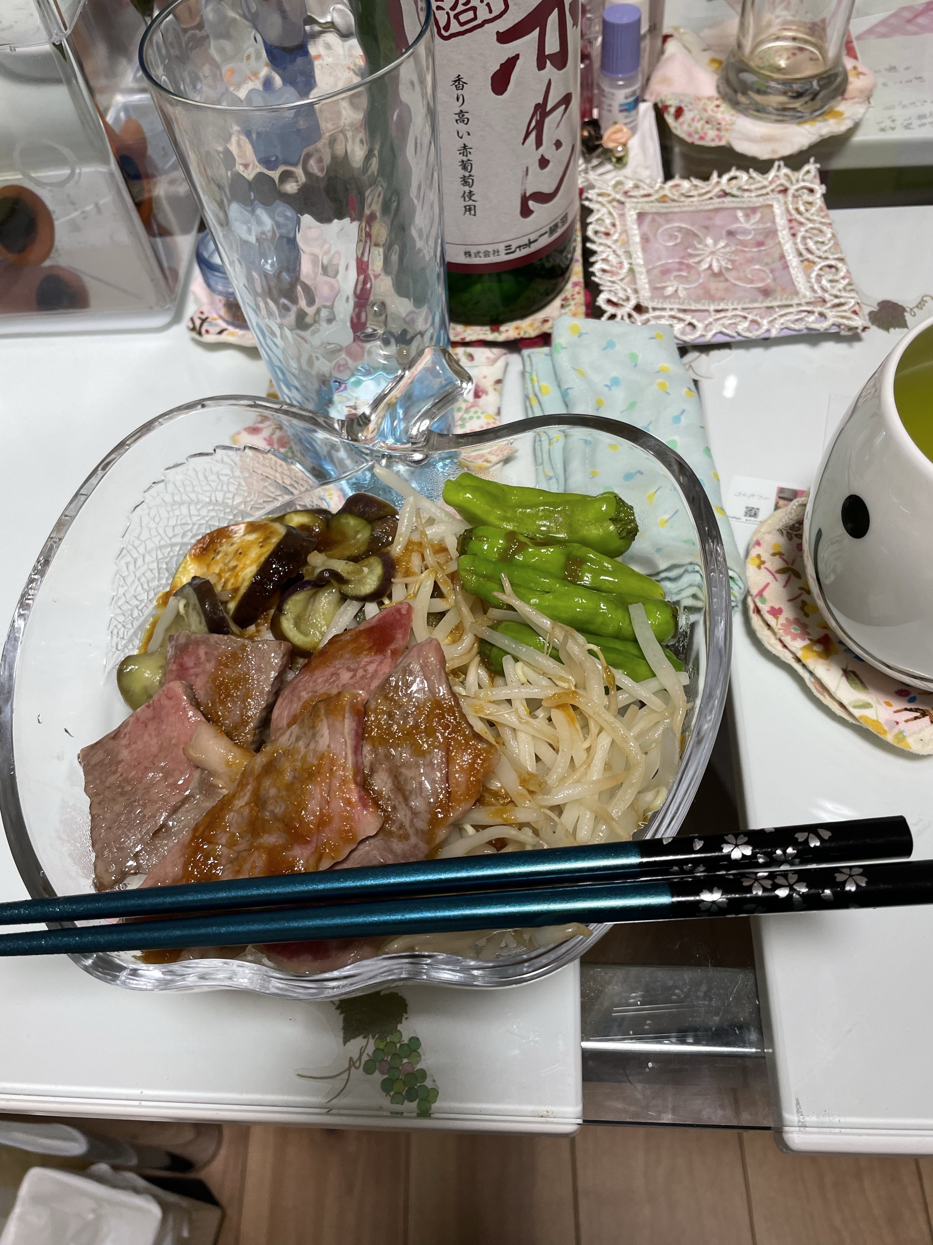 焼肉丼ですご飯少な目🍵🍖